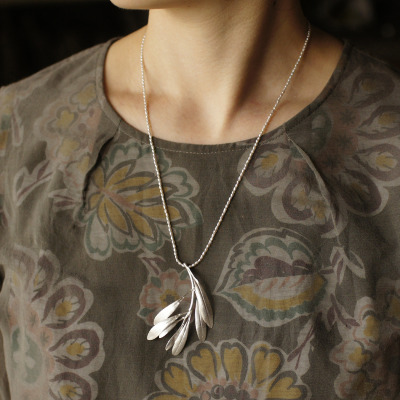 オリーブリーフの自然なたたずまいを表現したイヤリングをご紹介します。
